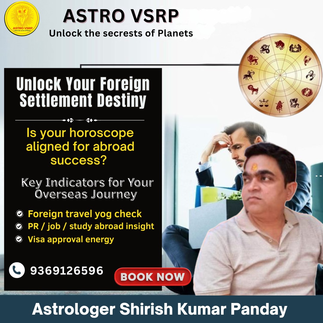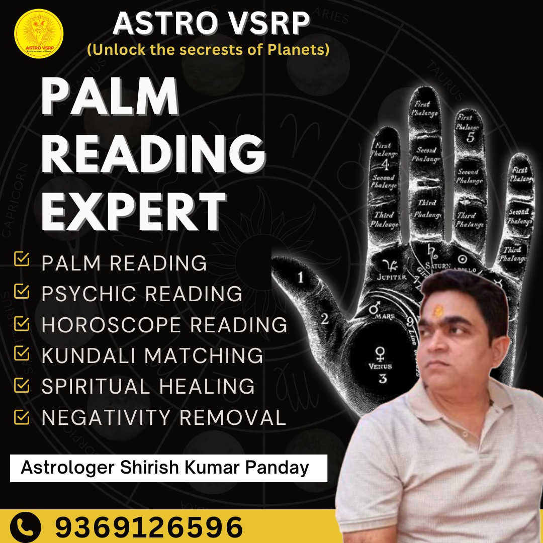 Astro VSRP is a trusted astrology and spiritual guidance center led by Bhrigu Nandi Nadi Expert (BNN) Astrologer Shirish Kumar Pandey, dedicated to helping individuals find clarity, solutions, and positive direction in life. With over 15+ years of experience, we offer a wide range of services including palm reading, psychic reading, horoscope analysis, kundali matching, numerology, spiritual healing, and negativity removal. Our expertise also extends to foreign settlement guidance, helping clients understand overseas travel yog, study, job, PR prospects, and visa approval energies through detailed horoscope insights. We provide effective solutions for love and relationship issues such as love marriage problems, husband and wife disputes, ex love back concerns, and emotional challenges. Our numerology services include signature correction, business name numerology, relationship compatibility, lucky dates, and baby name selection. We also offer kundali matching for a happy married life and guidance for court case-related stress and obstacles. Located at Sector 4, Raibareli Road, Vrindavan Colony, Lucknow, Uttar Pradesh, Astro VSRP focuses on personalized, confidential, and practical solutions. Our aim is to empower people to overcome problems, attract positivity, and move forward with confidence, harmony, and success in personal, professional, and spiritual life.