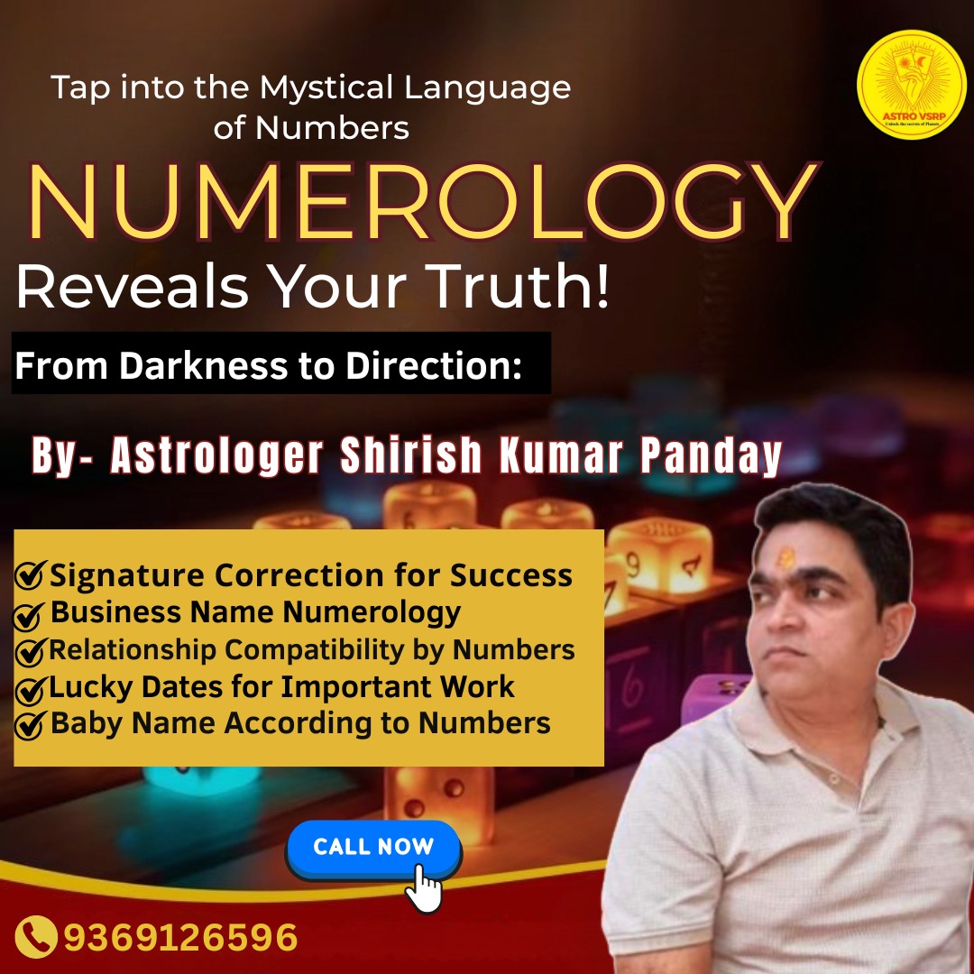 Astro VSRP is a trusted astrology and spiritual guidance center led by Bhrigu Nandi Nadi Expert (BNN) Astrologer Shirish Kumar Pandey, dedicated to helping individuals find clarity, solutions, and positive direction in life. With over 15+ years of experience, we offer a wide range of services including palm reading, psychic reading, horoscope analysis, kundali matching, numerology, spiritual healing, and negativity removal. Our expertise also extends to foreign settlement guidance, helping clients understand overseas travel yog, study, job, PR prospects, and visa approval energies through detailed horoscope insights. We provide effective solutions for love and relationship issues such as love marriage problems, husband and wife disputes, ex love back concerns, and emotional challenges. Our numerology services include signature correction, business name numerology, relationship compatibility, lucky dates, and baby name selection. We also offer kundali matching for a happy married life and guidance for court case-related stress and obstacles. Located at Sector 4, Raibareli Road, Vrindavan Colony, Lucknow, Uttar Pradesh, Astro VSRP focuses on personalized, confidential, and practical solutions. Our aim is to empower people to overcome problems, attract positivity, and move forward with confidence, harmony, and success in personal, professional, and spiritual life.